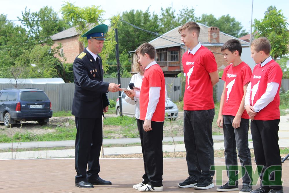 После завершения официальной части пограничники стали зрителями концерта, подготовленного артистами и коллективами ДК им. Маяковского. Приятным и памятным дополнением к празднику стало вручение активистам Движения Первых, которым недавно исполнилось четырнадцать лет, обложек на паспорт, которые им передал лично полковник Д. В. Савенко.