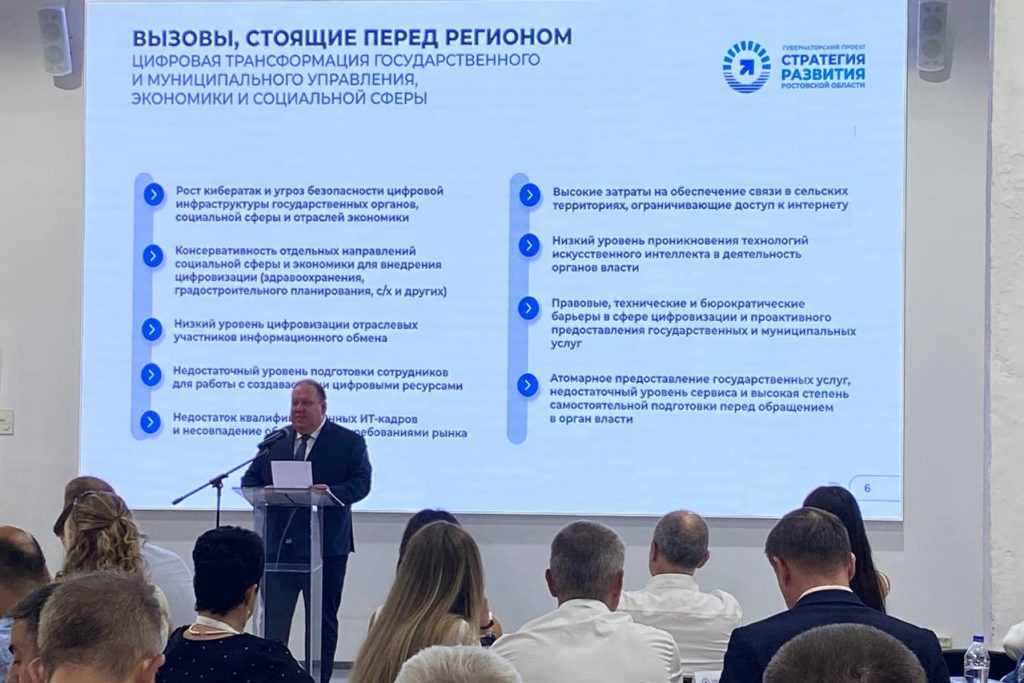 Заместитель губернатора Артем Хохлов напомнил, что цифровая трансформация государственного и муниципального управления, экономики и социальной сферы является одной из национальных целей, изложенных в указе Президента России. Он отметил, что это направление также включено в стратегию развития Ростовской области до 2030 года. Хохлов подчеркнул, что понимание вызовов и рисков даст возможность нивелировать их и инициировать необходимые изменения для создания комфортной и современного региона.