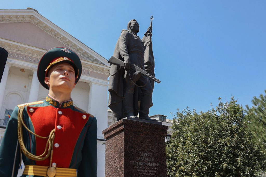 Сегодня, 18 июля, в Ростове-на-Дону глава региона Юрий Слюсарь возложил цветы к памятнику Алексею Бересту, чтобы отдать дань уважения подвигу этого легендарного земляка. Накануне Алексею Прокофьевичу Бересту было посмертно присвоено звание Героя России по Указу Президента РФ.