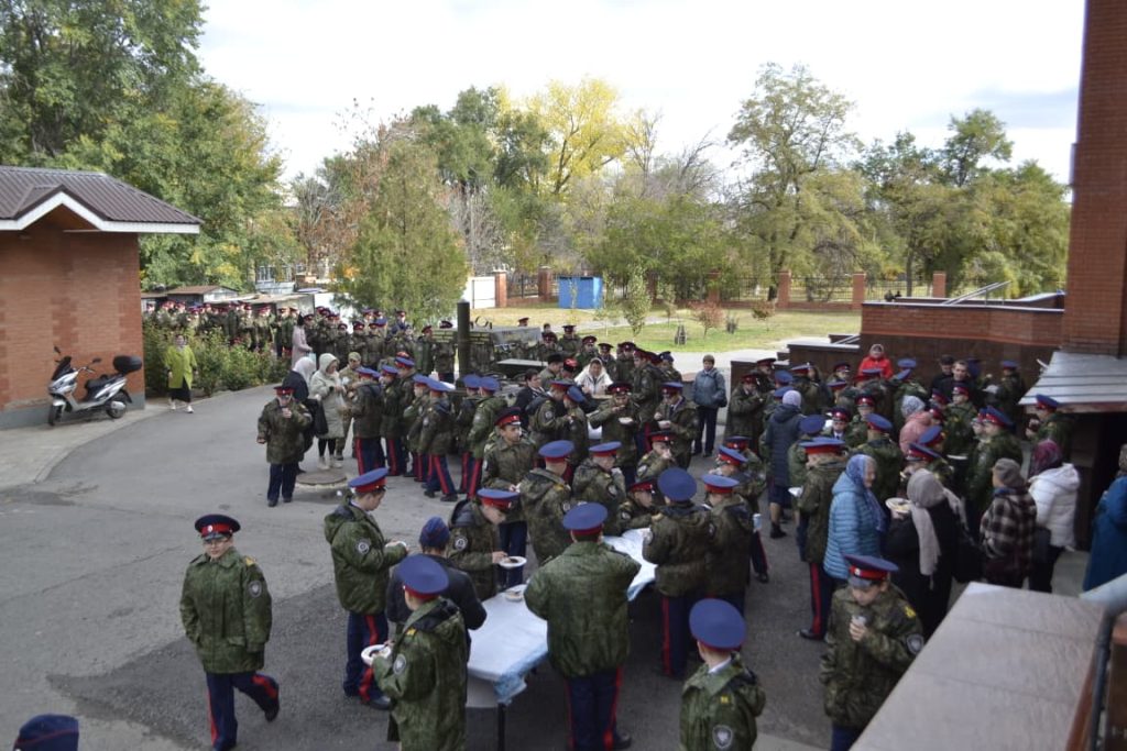 После крестного хода всех угостили традиционным горячим обедом с кашей из полевой казачьей кухни.