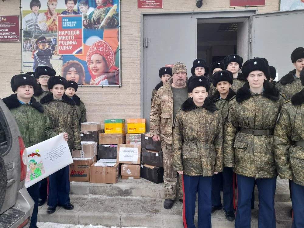Коллектив Каменского генерала Ф. П. Денисова казачьего кадетского корпуса отправил очередную партию гуманитарной помощи, писем, рисунков и поздравительных открыток с праздником Защитника Отечества.