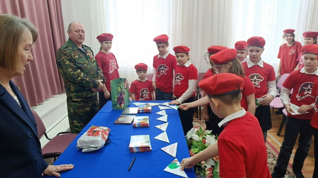 Перед юнармейцами и активистами Движения Первых выступили почётные гости: председатель Совета ветеранов В. А. Красивская и ветеран боевых действий в Афганистане Н. Л. Чеботарёв.