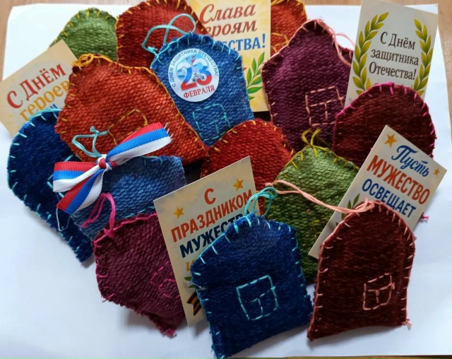 Они подготовили посылку для бойцов СВО к 23 февраля. Частичку своей души дети вложили в изготовление индивидуальных подарков для них, состоящих из сувениров в форме украшенных тряпичных домиков и поздравительных открыток.