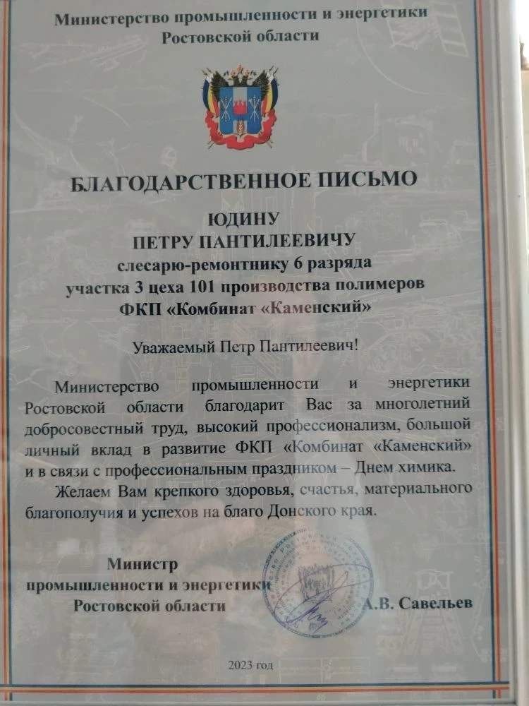 Да и дома без хлопот Петр Пантелеевич не мыслит жизни. На его участке – 15 соток земли, и с наступлением сезона он с не меньшим энтузиазмом берется за огород. Особая гордость династии – дети. Сын пошел по стопам отца и трудится на комбинате слесарем. Невестка нашла свое призвание в бухгалтерии предприятия, а супруга Петра Пантелеевича многие годы работала в центральном КИПиА. Получается, что почти вся семья Юдиных связала судьбу с ФКП «Комбинат «Каменский».